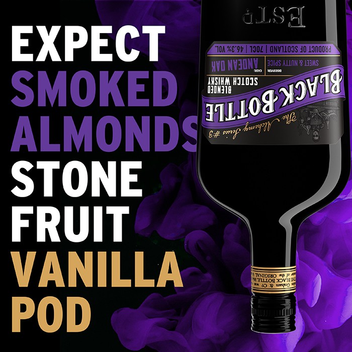 블랙 바틀은 1879년부터 시작된 그레이엄 형제의 개척 정신과 독특한 블렌딩 방식으로 완성된 스모키한 스카치 위스키입니다. 스페이사이드와 아일라 지역의 최상급 몰트가 만나 스모키한 향이 조화를 이루며, 대담하고 모험적인 맛을 전달합니다. 전통을 재해석한 블랙 바틀은 누구에게나 일상의 순간을 특별하게 만드는 잊지 못할 경험을 선사합니다.